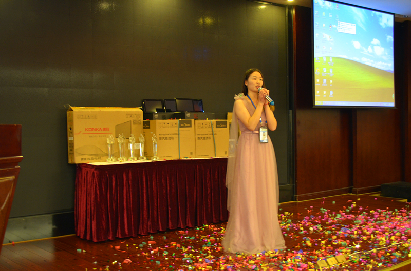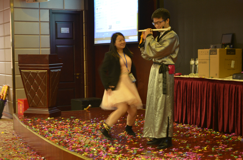 在后面的过程中我们优秀的各市场部同仁用自己饱满的激情和昂扬的精神通过各种形式的节目表演向大家展示了他们年轻、阳光的一面,现场所有的人都感受到了他们身上满满的正能量。中间环节穿插的抽奖活动不但为大家提供了丰富的奖品也为本次大会增添了不少喜庆的氛围。